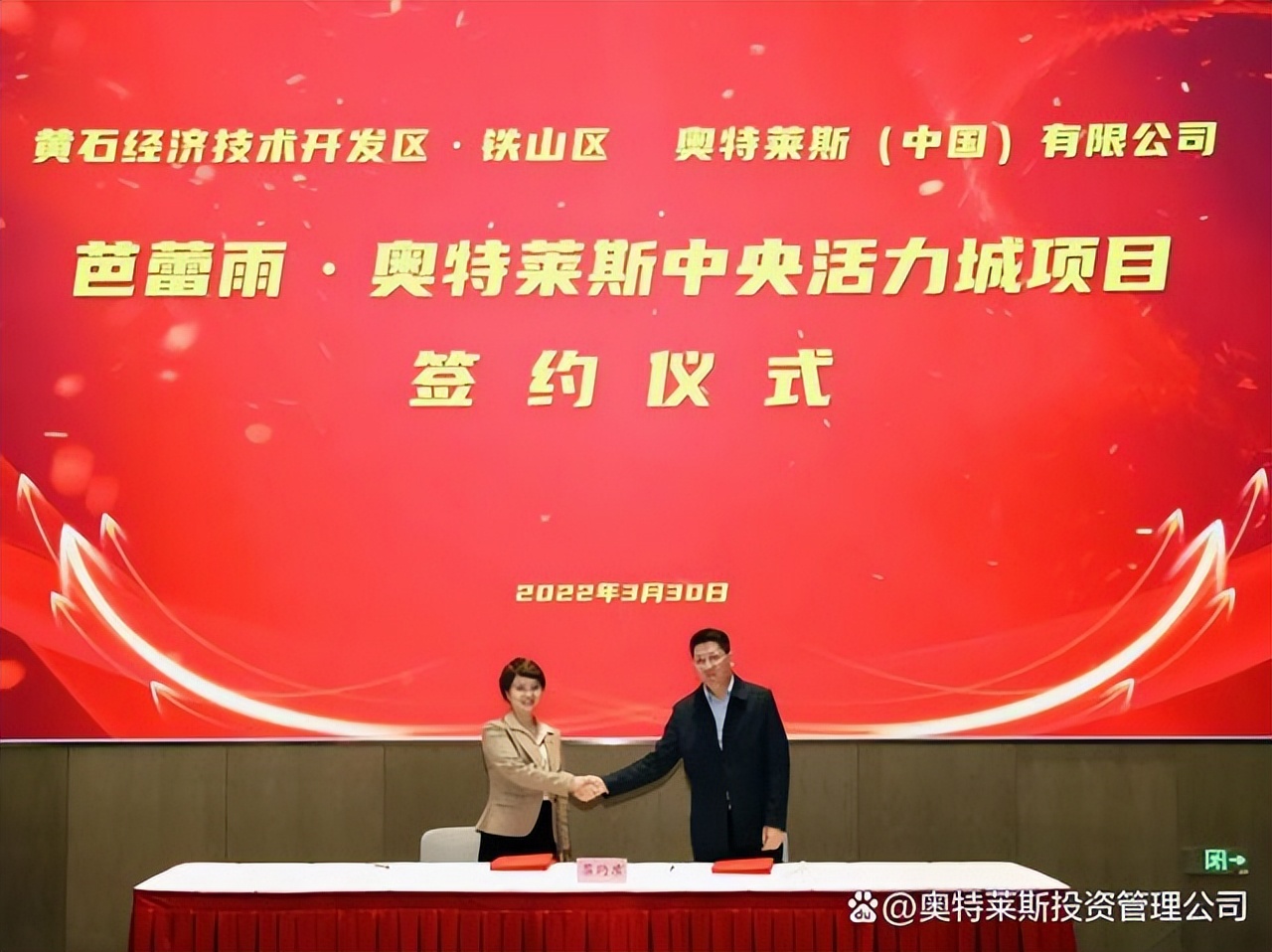 3月30日,奧特萊斯(中國(guó))有限公司總裁拜訪黃石市政府,與黃石市吳之凌市長(zhǎng)進(jìn)行會(huì)談,并與黃石市經(jīng)開(kāi)區(qū)·鐵山區(qū)簽署“黃石芭蕾雨·奧特萊斯中央活力城項(xiàng)目”合作協(xié)議。黃石市政府、經(jīng)開(kāi)區(qū)管委會(huì)·鐵山區(qū)政府相關(guān)部門(mén),以及公司助理總裁李曉薩參會(huì)。