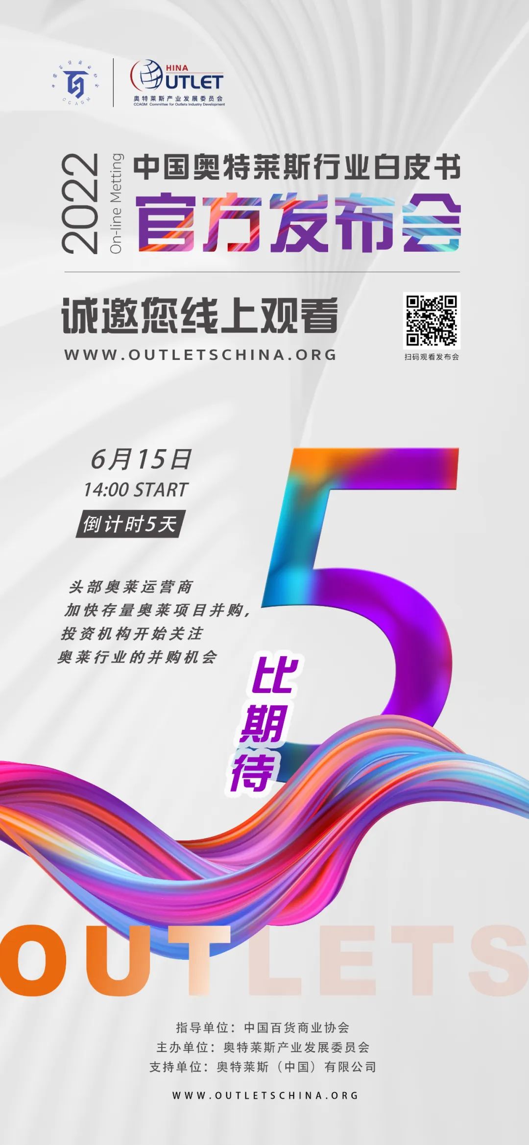 2022年6月15日14:00,《2022年中國奧特萊斯行業(yè)白皮書》線上發(fā)布會(huì)即將正式開始,本次發(fā)布會(huì),將對(duì)國內(nèi)零售市場及奧萊產(chǎn)業(yè)引入中國20年發(fā)展的經(jīng)驗(yàn)及機(jī)遇做出全新解讀。