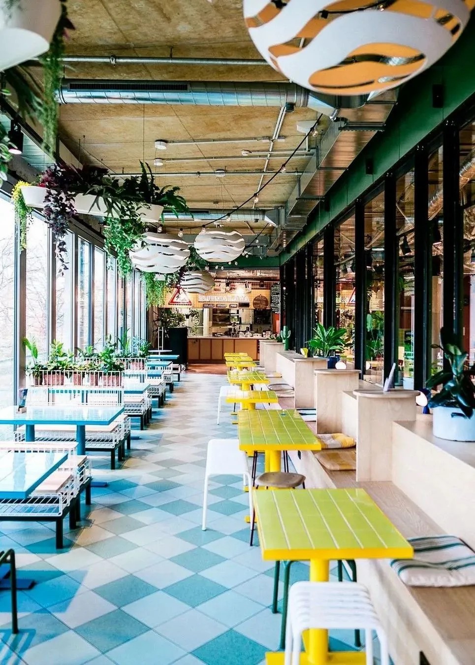 同樣以模塊化構(gòu)建的還有擁有1800㎡的KANTINI多元餐飲空間,遵循其獨特的故事性、敘事性建筑和拼貼原則的共生關(guān)系開啟了新型社交型餐飲空間。