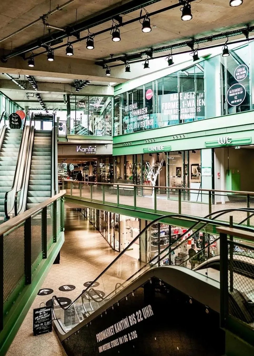 這里有集合眾多設(shè)計師品牌的購物中心,有曾舉辦柏林國際電影節(jié)的動物園宮影院,還有柏林最具創(chuàng)意的設(shè)計酒店之一的25 Hours Hotel。同時,Bikini Berlin也是歐洲第一家以設(shè)計、藝術(shù)、文化展現(xiàn)、綠色主題裝潢為中心的設(shè)計商場,被稱為是策展型商業(yè)鼻祖。