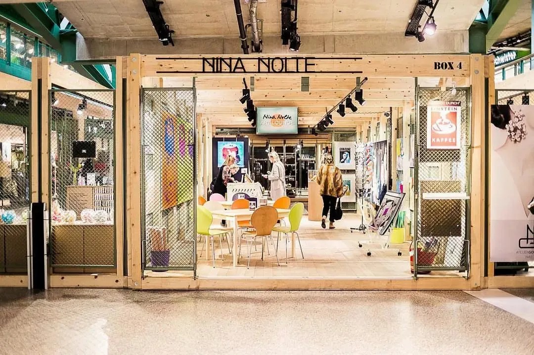 位于Bikini Berlin大廳的十幾個由木質(zhì)構(gòu)成的大小迥異的“盒子”(Pop-up boxes),不僅是傳遞著一種關(guān)于概念的空間,也是為擁有夢想的年輕人提供編制夢想的場所。這些面積19-39㎡不等的盒子,是提供給創(chuàng)意型設(shè)計師短期租用的零售場所,給予他們充分發(fā)揮創(chuàng)意、售賣獨特產(chǎn)品的空間,以此支持資金短缺的創(chuàng)業(yè)者發(fā)展自己的獨立品牌。