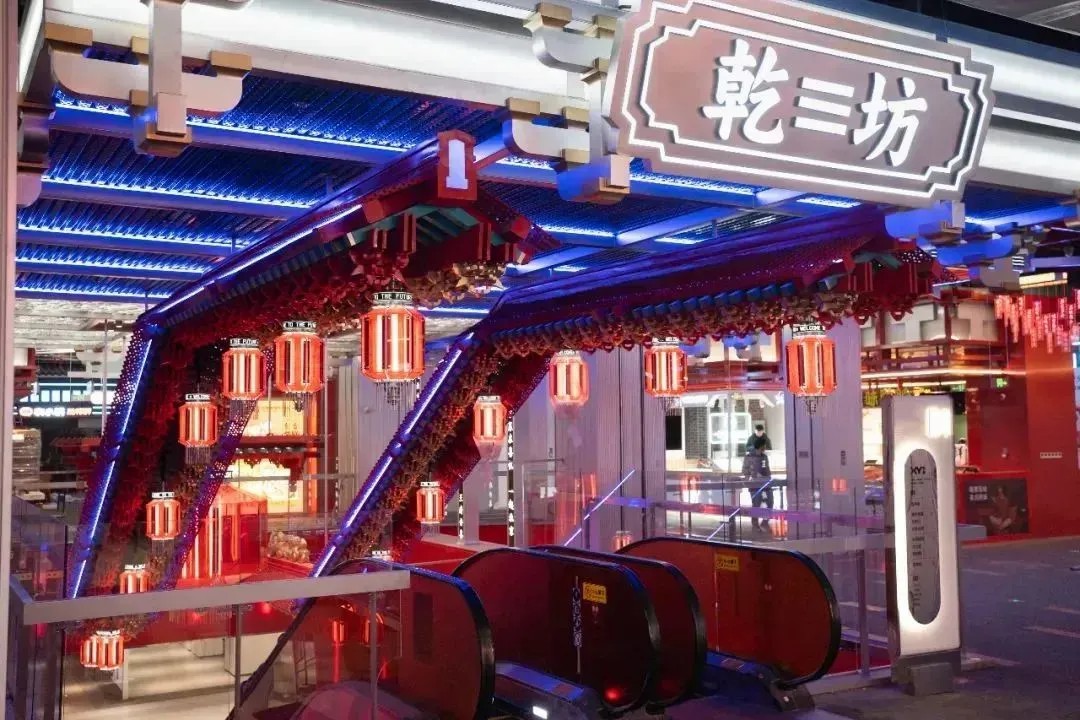 業(yè)態(tài)組合上,1-4層以零售為主,多為買手店及限量潮玩等新興品牌,以及社交屬性較強(qiáng)的圈層周邊,例如極限運(yùn)動(dòng)、露營(yíng)、手辦等;5-7層則以餐飲業(yè)態(tài)為主,如社交餐飲,特色美食街區(qū)等,可同時(shí)滿足味蕾體驗(yàn)和社交打卡需求;負(fù)1-2層則打造“Y3K”沉浸式新國(guó)潮空間,將藝術(shù)、國(guó)潮文化和沉浸式體驗(yàn)結(jié)合在一起。