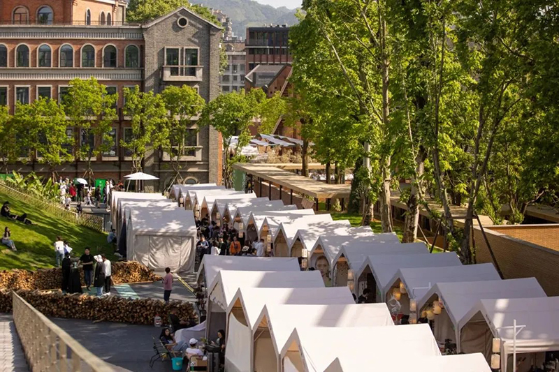 集市每周五、周六在街區(qū)廣場(chǎng)及主干道開市,占地9000平米,吸引數(shù)千名景漂創(chuàng)業(yè)青年參與,每月進(jìn)行報(bào)名和重新篩選。