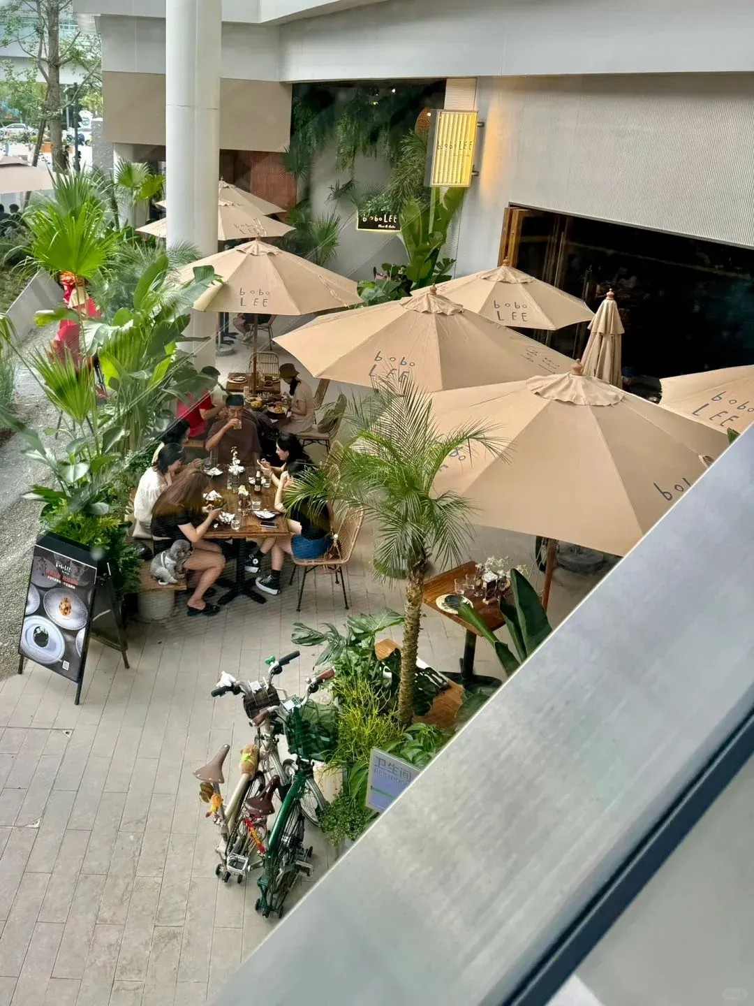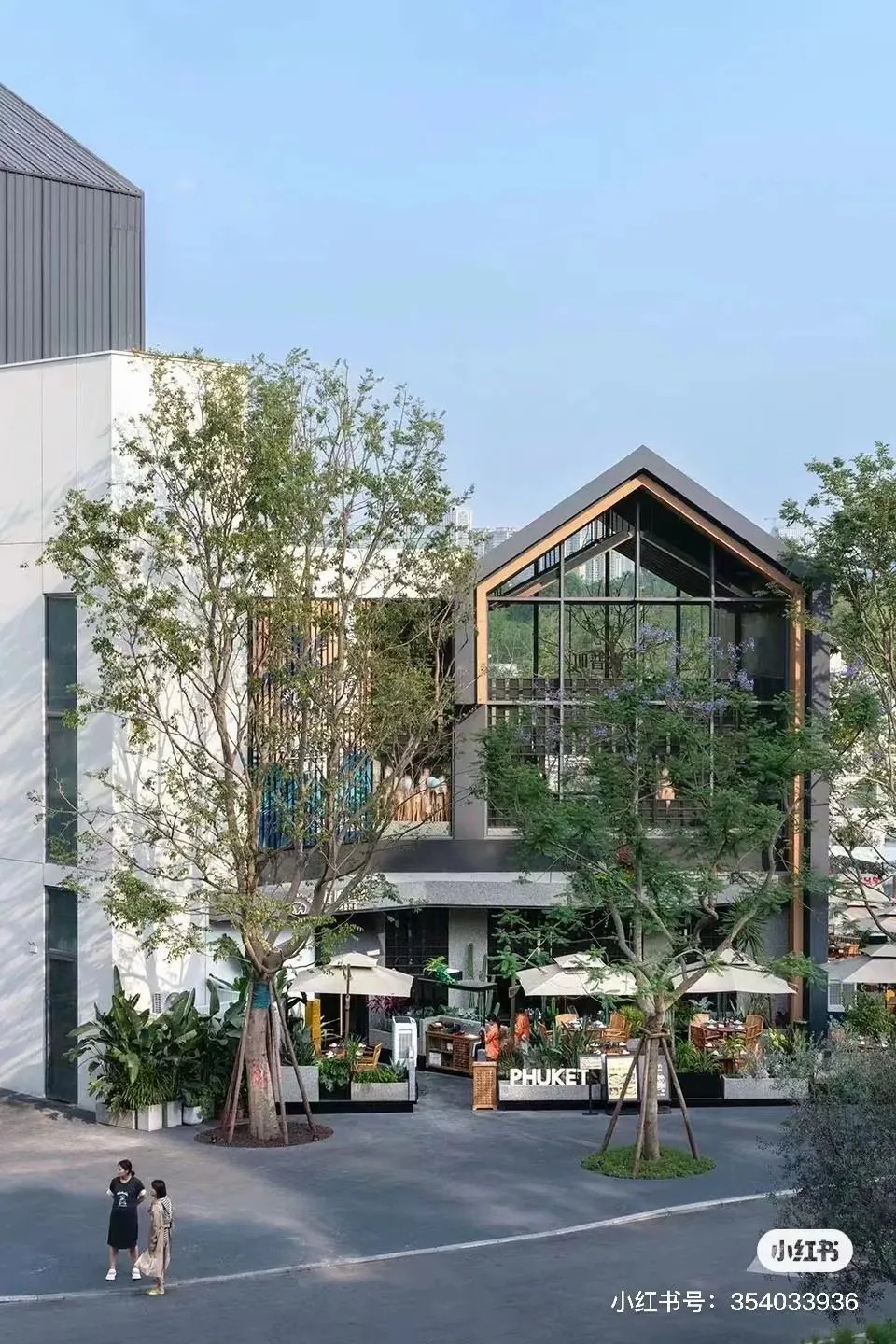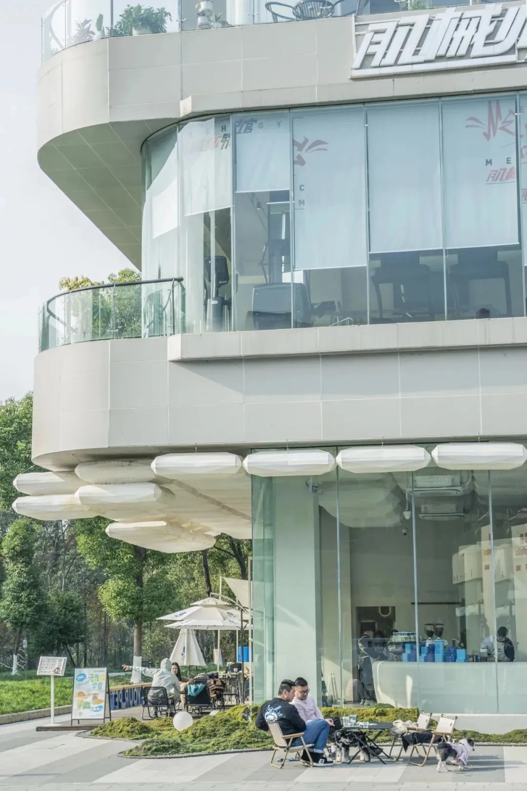 街道旁的建筑采用了大面積落地窗設(shè)計(jì),讓室外的綠意與光線無(wú)縫融入室內(nèi)空間,營(yíng)造出一種開(kāi)闊而明亮的氛圍,使人心曠神怡,毫無(wú)拘束之感。