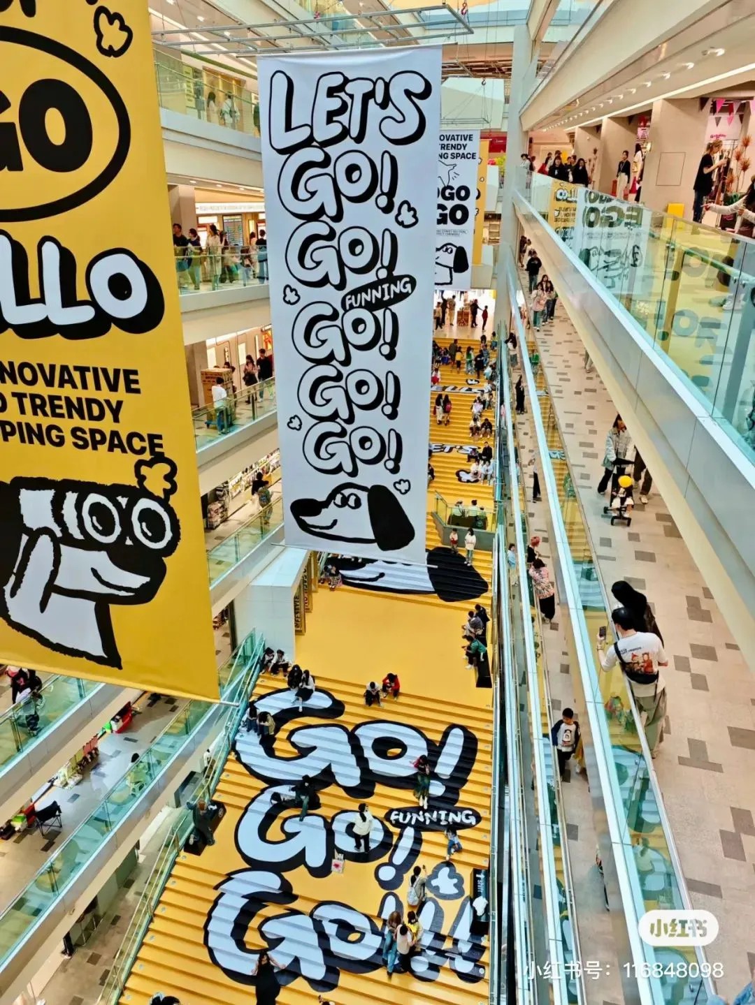 抵達(dá)商場(chǎng)入口,一抹鮮亮黃彩瞬間吸引目光;步入大堂,簡(jiǎn)潔廣告語(yǔ)映入眼簾,色調(diào)與設(shè)計(jì)渾然統(tǒng)一,主通道沐浴在明媚黃光中,配以吉祥物GoGo萌態(tài)畫(huà)像,攝影佳作信手拈來(lái),隨手一拍皆是風(fēng)景畫(huà)。