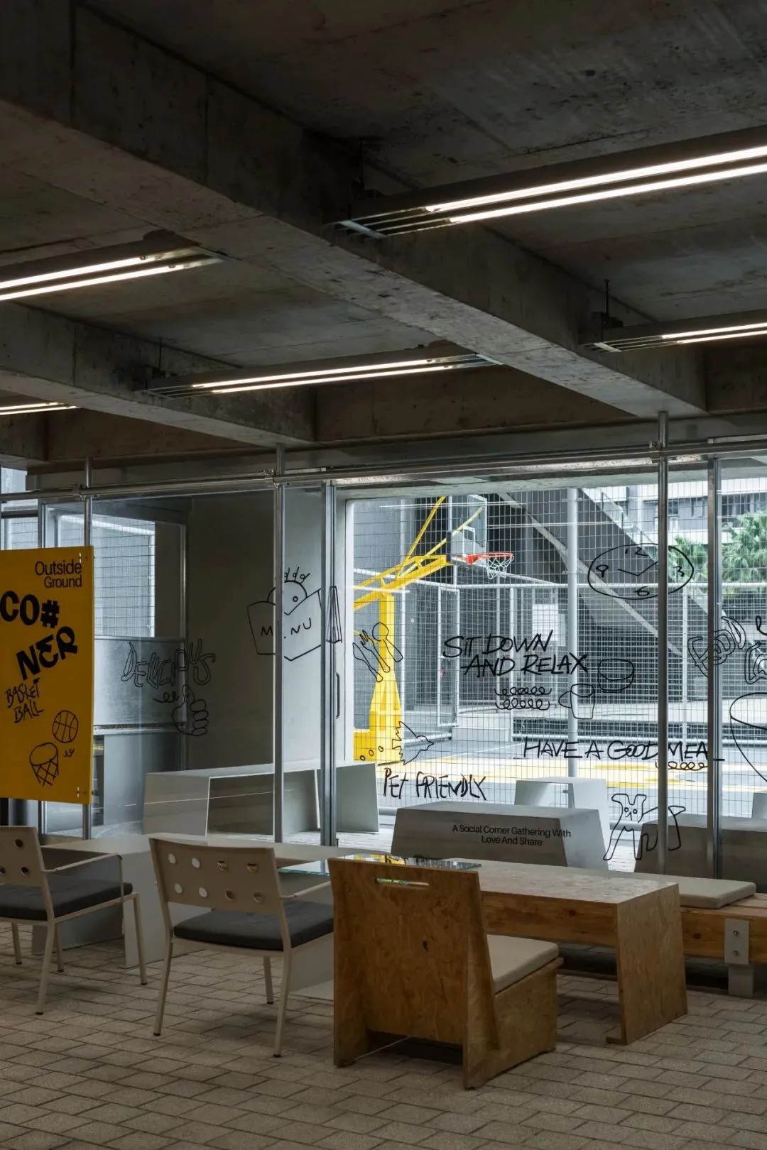 CO#NER食堂,以禁欲系冷淡風(fēng)為主旋律,設(shè)計(jì)上承襲了極致輕工業(yè)的時(shí)尚美學(xué),細(xì)膩而不失格調(diào)。其獨(dú)特的售賣模式圍繞模塊化“檔口”展開(kāi),融合POP UP快閃店概念,營(yíng)造出既持續(xù)又多變的用餐氛圍,旨在為顧客解鎖無(wú)限可能的美食探索之旅。空間內(nèi),水泥原色與暖木色家具巧妙碰撞,輔以生動(dòng)活潑的簡(jiǎn)筆插畫(huà),色彩斑斕間傳遞出溫馨舒適的放松信號(hào),讓人在享受美食的同時(shí),也能感受到心靈的慰藉。