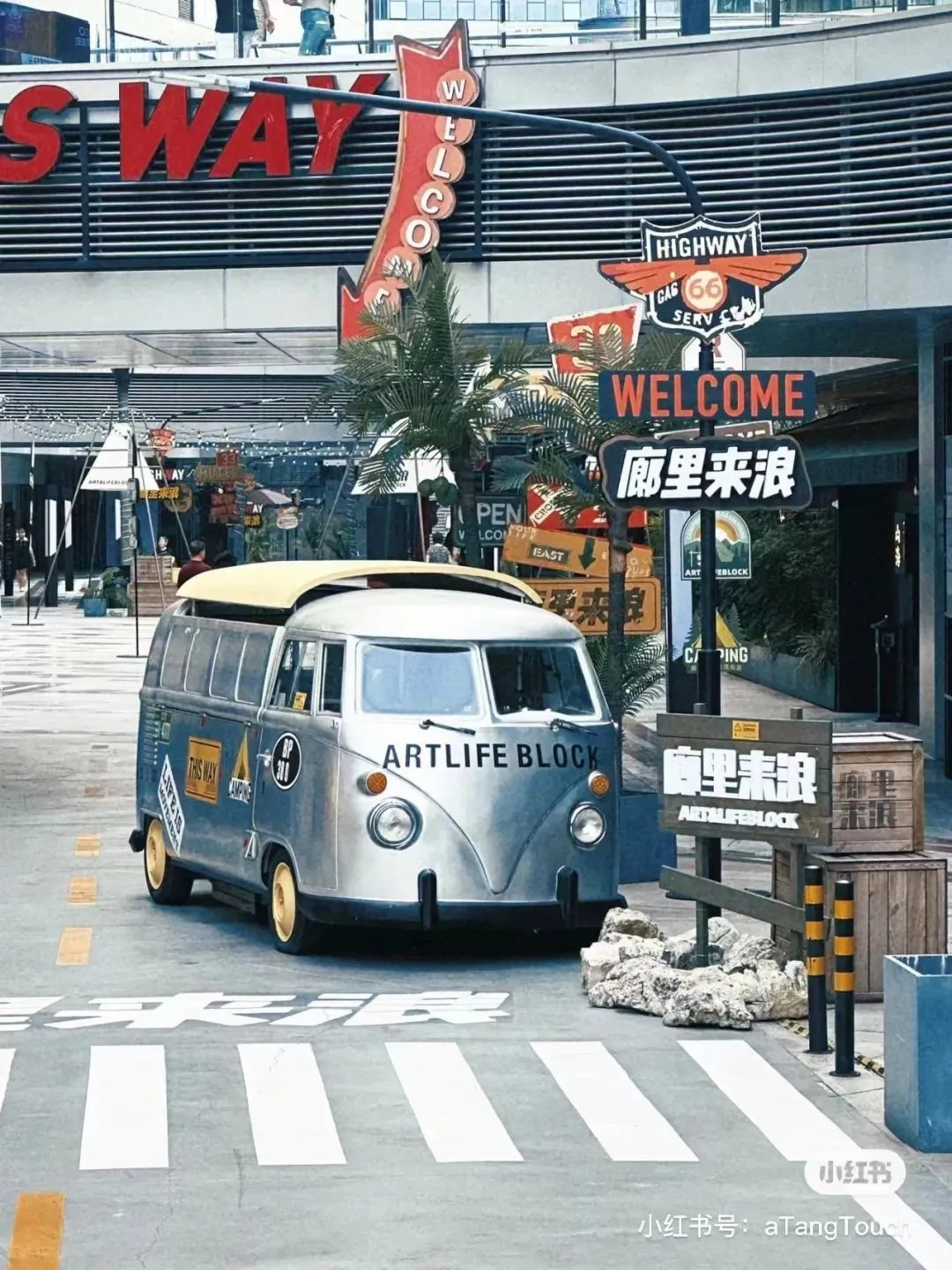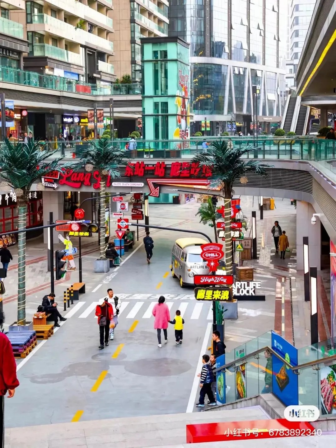 街區(qū)核心的下沉式廣場(chǎng),匠心獨(dú)運(yùn),以美式公路風(fēng)情為藍(lán)本,巧妙融合異域風(fēng)韻與休閑度假氣息,不僅設(shè)計(jì)獨(dú)樹(shù)一幟,更成攝影打卡新寵,讓人仿佛穿越時(shí)空,瞬間切換場(chǎng)景,領(lǐng)略多元文化的魅力。此舉不僅巧妙解決了傳統(tǒng)商業(yè)下沉空間引流之困,更為其注入了勃勃生機(jī)與無(wú)限可能。
