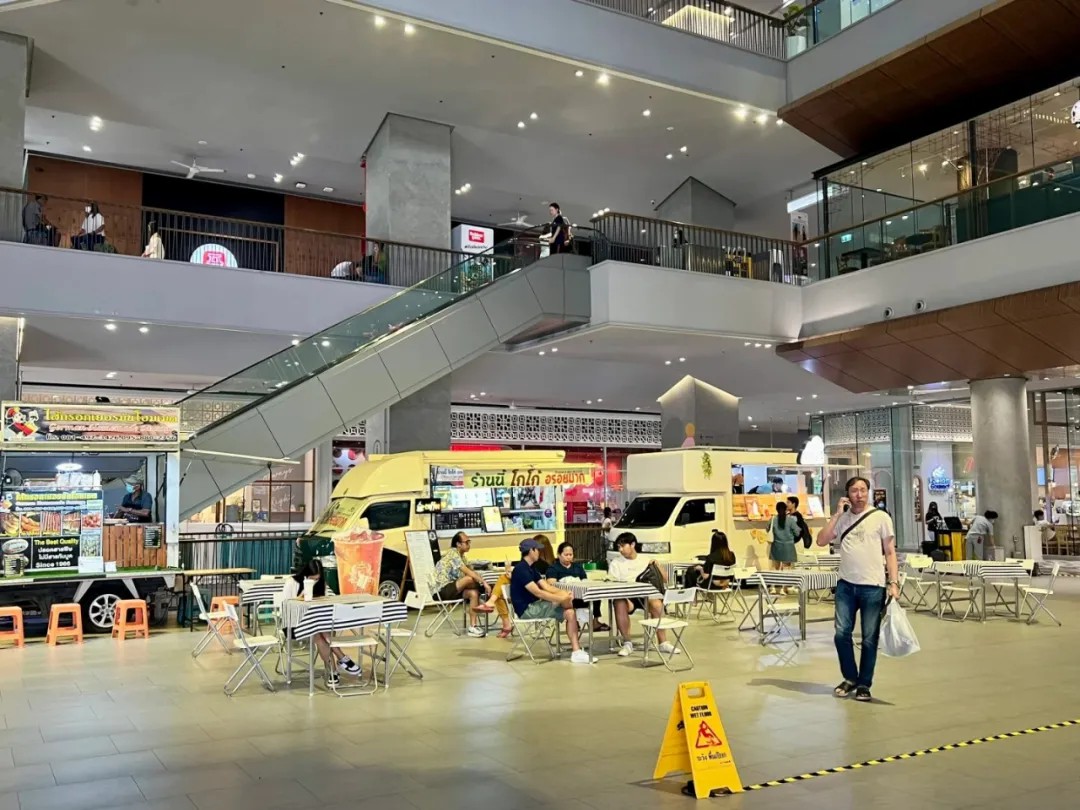 Samyan Mitrtown展現(xiàn)24小時(shí)社區(qū)友好創(chuàng)新精神,其“全天候開放區(qū)”含Big C超市、星巴克等知名品牌及書店、共享空間,便利居民。業(yè)態(tài)多樣,涵蓋零售、美容美發(fā)、食品廣場、影院等,還有屋頂花園,滿足不同需求。