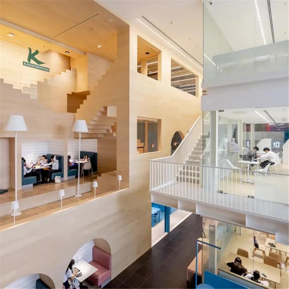 SAMYAN CO-OP是購物中心二樓的共享空間,含5個(gè)獨(dú)立又相連的建筑,設(shè)自習(xí)室、討論室、會(huì)議室等,對外開放租賃。一樓售日常用品,二樓為生活服務(wù)類店鋪,三樓融合泰國傳統(tǒng)與現(xiàn)代藝術(shù)風(fēng)格的空間。