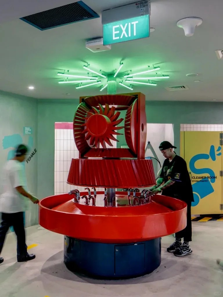 新加坡GRiD項(xiàng)目位于實(shí)利基藝術(shù)區(qū),經(jīng)設(shè)計(jì)改造,將普通街角轉(zhuǎn)變?yōu)榛盍λ囊绲膭?chuàng)意社交中心。其立面改造尤為亮眼,通過重新設(shè)計(jì)建筑轉(zhuǎn)角,運(yùn)用工業(yè)風(fēng)材料與肌理,彰顯朋克搖滾精神與自由表達(dá)風(fēng)格,成為引人注目的視覺焦點(diǎn)與地標(biāo)。