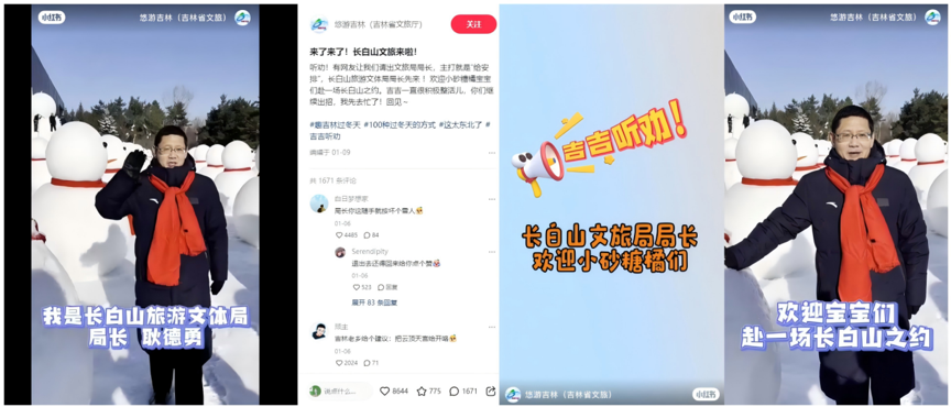后有網友喊話“快讓長白山跟一波熱度”,吉林文旅現(xiàn)場“搖人”,長白山旅游文體局局長隨即拍攝歡迎視頻,再次實戰(zhàn)“聽勸式營銷”。
