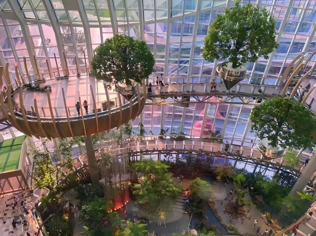 購(gòu)物中心引入綠色自然的戶(hù)外空間和各類(lèi)健康運(yùn)動(dòng)的活動(dòng),不失為一種常見(jiàn)策略。如重慶光環(huán)購(gòu)物公園通過(guò)生態(tài)綠植、以綠色填充商業(yè)公共空間,給年輕人營(yíng)造一種仿若森林的美感,混合著泥土氣息的自然美感撲面而來(lái),呈現(xiàn)一處城市生態(tài)綠洲。