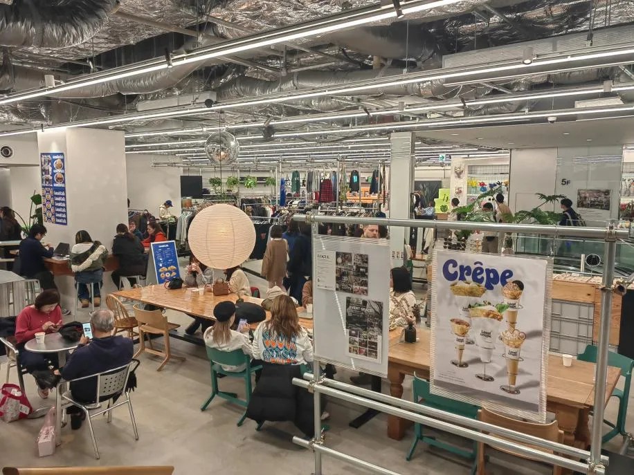 在東京的一座Tokyu Plaza中,就見(jiàn)到其舍棄半層經(jīng)營(yíng)面積,打造出公共休閑空間。當(dāng)然,所謂“舍棄”也并非完全屏蔽零售商品售賣,只是有取舍地將更能豐富消費(fèi)者游逛體驗(yàn)的特定零售品類包羅其中。這些商品或品牌的陳列更像是美陳道具,沒(méi)有出跳的展柜與收銀臺(tái),總能讓進(jìn)場(chǎng)顧客在不經(jīng)意間隨手拿起挑選。