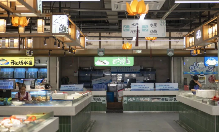 改造后的福明菜場(chǎng)對(duì)空間進(jìn)行了重新規(guī)劃,設(shè)置了蔬菜、水果、肉類(lèi)、海鮮、禽蛋、豆制品、熟食等不同的功能區(qū)域。除了傳統(tǒng)的農(nóng)產(chǎn)品攤位外,福明菜場(chǎng)還引入了許多特色業(yè)態(tài)。如增加了鮮花店、烘焙坊、小吃店、便利店等,滿足了消費(fèi)者在購(gòu)物過(guò)程中的多樣化需求。同時(shí),還設(shè)置了一些品牌農(nóng)產(chǎn)品專(zhuān)賣(mài)店,提供高品質(zhì)的特色農(nóng)產(chǎn)品,提升了菜場(chǎng)的檔次。