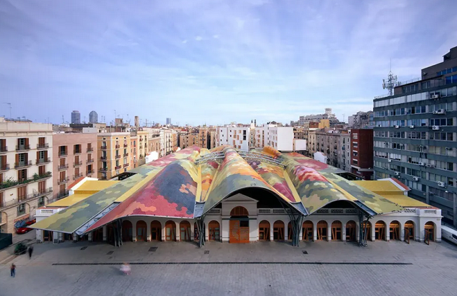 在改造過(guò)程中,設(shè)計(jì)師充分尊重市場(chǎng)的歷史和傳統(tǒng),保留了原有的建筑結(jié)構(gòu)和部分古老的攤位設(shè)施。同時(shí),引入了現(xiàn)代化的設(shè)計(jì)理念,如采用新型建筑材料、優(yōu)化空間布局、增加環(huán)保設(shè)施等,使市場(chǎng)既具有歷史底蘊(yùn),又充滿現(xiàn)代活力。如,波浪形的彩色屋頂,由不同顏色的陶瓷碎片拼接而成,宛如一幅巨大的抽象畫(huà),為市場(chǎng)增添了獨(dú)特的藝術(shù)氛圍。
